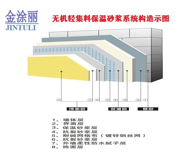 “金涂麗”無機輕集料保溫砂漿是一種新型保溫隔熱材料,是以玻化微珠為主要骨料、水泥、膠粉、硅粉、海泡石、植物纖維等配料經(jīng)無重力混合機混配而成,具有強度高、質(zhì)輕、保溫、隔熱好、電絕緣性能好、耐磨、耐腐蝕、防輻射等顯著特點耐高溫、耐老化、吸水率小等優(yōu)點。是做建筑內(nèi)外墻體保溫砂漿中的主要原料!本產(chǎn)品嚴格執(zhí)行公安部消防(2011)65號文件強指導(dǎo)生產(chǎn)。防火等級A1級。具有極好、優(yōu)異的墻體保溫隔熱防火效果。具有抗裂,其抗壓、粘結(jié)強度極高。本產(chǎn)品克服了聚苯顆粒等有機材料易燃、高溫時產(chǎn)生有害氣體、易老化。具有防火、保溫、隔熱性能、強度高、耐老化(可與建筑物同壽命)、操作方便等特點。
